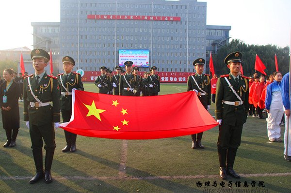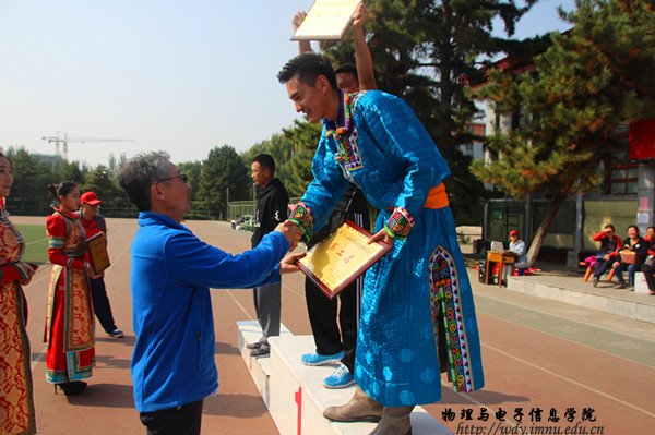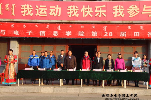 院长特古斯教授,党总支副书记何小龙老师,副院长吉日嘎拉教授,团总支书记萨其尔老师等多位领导、老师及各班班主任共同出席此次院运会。在入场式中,英武帅气的国旗队、彩旗队、花束队、裁判代表方阵、各班的方阵排成整齐的队列,依次走过主席台。在运动员代表、裁判员代表庄严宣誓后,特古斯院长致开幕词,并由何小龙老师宣布本届运动会正式开幕。随着运动会开幕式的结束 ,吉日嘎拉教授打响了本届院运会的第一枪,运动会各项赛事开始有序进行。