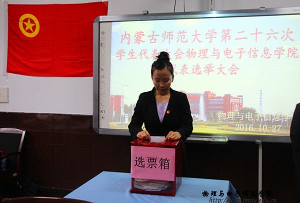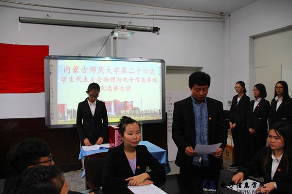 第二十六次学生代表大会代表选举办法》,现场对《选举法》进行举手表决并且获得全票通过。最后由宣票人刘慧翎,监票人丁研,计票人王静同学根据会议规定,通过差额选举的方式选举产生冯楷森、翁秀章等九位同学为熟女直播
