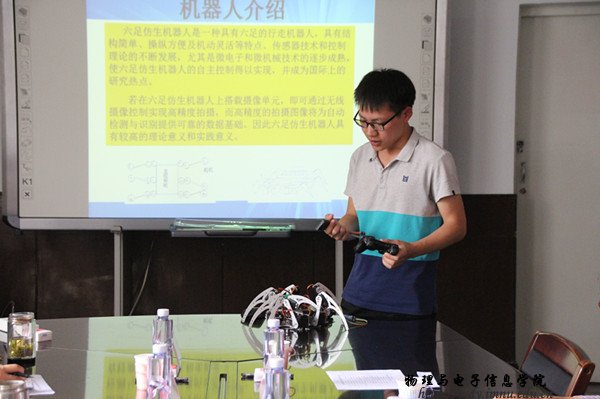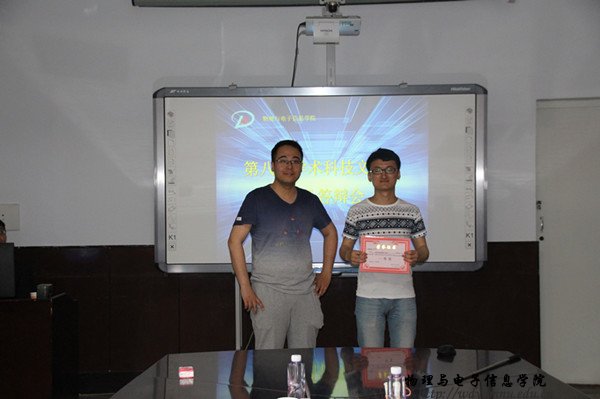 本届学术科技文化月活动共征集36件作品,通过一审共筛选出17件设计制作类作品、4件论文类作品。首先进行的是设计制作类作品答辩环节,在答辩过程中,选手们的作品展示配上他们锦上添花的说明,一件件作品变得活灵活现。其中,《脑电信号的获取与分析》、《基于stm32单片机及GPRS网络的智能环境监测设备》、《基于惯性传感器的视角控制》等作品设计巧妙新颖、技术程度高,受到了老师们的高度评价和悉心指导。当然,在参赛的作品里也存在着一些技术不成熟的作品,参赛选手们通过跟评委老师们的请教和讨论,多受启发,受益匪浅。论文类作品中也不乏有《Mn0.6Fe1.35P0.5Si0.5粉末样品的制备及X射线衍射分析》、《陶瓷材料的概述及增韧方法的研究》等内容丰富、专业性强的作品,赢得了评委们的赞赏。