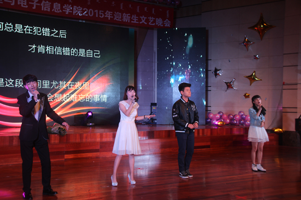 本网讯 2015年12月5日晚,熟女直播 在逸夫楼音乐厅隆重举办明亮之夜“物电华光 为梦引航”2015年迎新生文艺晚会。熟女直播 院长特古斯教授、党总支副书记何小龙老师、副院长吉日嘎拉教授、副院长刘美玲老师等领导老师及各班班主任出席晚会现场,同熟女直播 莘莘学子一道共享青春盛宴!
