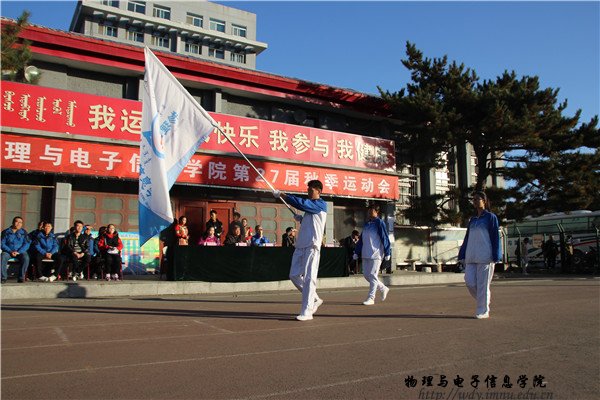 院长特古斯教授,党总支副书记何小龙老师,副院长吉日嘎拉教授,团总支书记萨其尔老师等多位领导、老师及各班班主任共同出席此次院运会。入场式上,国旗队、彩旗队、花束队、裁判代表方阵、各班的方阵排成整齐的队列,迈着雄健有力的步伐走过主席台。在运动员代表、裁判员代表庄严宣誓后,特古斯院长致开幕词,并由何小龙老师宣布本届运动会正式开幕。随着运动会开幕式的结束 ,吉日嘎拉教授打响了本届院运会的第一枪,运动会各项赛事开始有序进行。