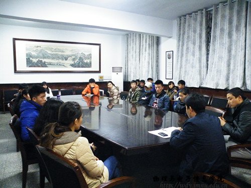在物理楼会议室召开2014年冬训动员大会。宋老师出席并主持会议,参加会议的有学生会副主席史明洋、体育部部长刑森荣及部员及参加此次冬训21名运动员。