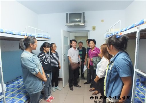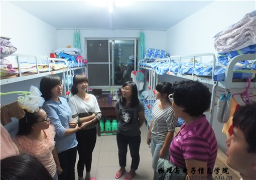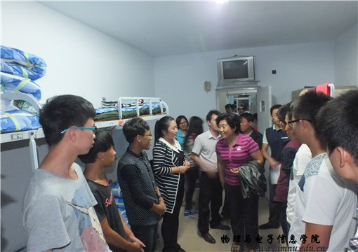 党总支书记阿梅老师特意下班后留在学院,等待和各班班主任们一同去新生宿舍看望新生和了解住宿情况。来到宿舍后,阿梅书记深入到每个男女生宿舍,实地看望了2014级新生,嘘寒问暖,看到每个宿舍的成员相处融洽,她欣喜地说:希望你们团结互助,开心学习生活,多锻炼,健康快乐成长。随后,她特地看望了一位来自新疆维吾尔自治区的小姑娘,并勉励她们宿舍的每个成员:希望你们搞好民族大团结,我们都是守望相助的一家人。同时,同学们对阿梅书记的到来,十分欣喜,纷纷热烈鼓掌迎接,围绕在阿梅书记身边,聊家常,说学习,谈运动,话人生。在中秋佳节来临之际,阿梅书记的此次夜行,真正让同学们感受到了学院的关怀,更多的是一种家的温暖体贴。
