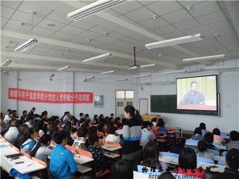 2014年4月10日下午,熟女直播 在田楼十共举行了党课培训,利用多媒体教学,为同学们播放了贵州大学校长、党委副书记郑强的授课视频,在他的犀利风趣的言语中,加强了入党积极分子的政治理论素养和提高同学们的思想觉悟,进一步端正入党动机和态度,增强了对中国共产党的基本知识和整体社会的认识和觉悟。