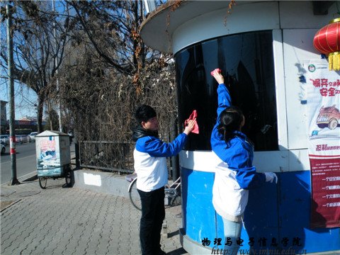 志愿者们热心地对校门口警卫厅进行了细心的清洁,在清洁过程中,同学们精心细致的打扫着每一个角落,深刻践行着为人民服务的良好雷锋精神,同时值班交警对志愿者的践行雷锋精神表示深深感动。