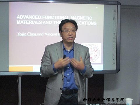 Vincent Harris 教授介绍了永磁材料的发展与应用情况,并报道了他们近期的研究成果--无稀土永磁材料的研制和性能。陈亚杰教授首先介绍了先进功能材料,如自旋电子材料、磁制冷材料、压电材料的研究与发展过程以及取得的成果和面临的问题。之后陈亚杰教授还介绍了目前他的研究工作--压电材料的研制及其应用。二位专家从材料科学前沿发展的角度,利用丰富的实验数据和高质量的科研成果,介绍和综述了当今先进功能材料的发展与应用概况,并与师生进行交流。会后两位专家参观了我校功能材料物理与化学自治区重点实验室,并对双方今后合作与交流进行了座谈。