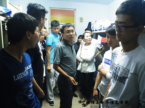走进学生宿舍,看着学生的整齐的被褥,干净的桌椅,何老师在表示满意同时提出更高的要求。紧接着,老师又把更多的时间放在了对学生生活的慰问上.询问大家,饭菜是否合口、天气是否适应、舍友之间相处是否融洽等问题. 老师特别提醒新生要注意寝室用电安全、财产安全和交通安全等问题。