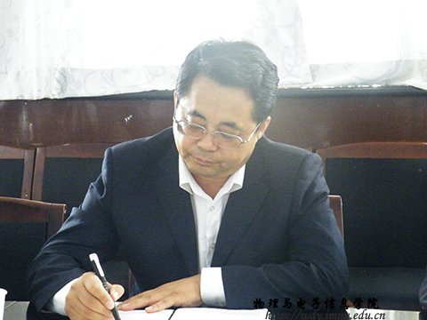 对张海峰副校长的到来表示热烈的欢迎,并详细介绍了学院发展过程、教师职称结构、研究生及本科生教学和科研工作等基本情况。随后教师代表就教学和教室管理等方面中存在的问题提出建议和意见,张校长和教务处相关领导一边认真听取意见一边做了详细的记录,同时表示对老师和同学们提出的问题会后认真梳理尽快解决。