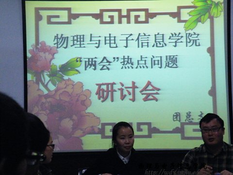 在物理楼会议室就“两会”热点问题召开了研讨会。宣传本次两会的重要精神,普及两会常识,讨论两会热点话题。参加本次会议的有团总支萨其尔,学工办呼和老师,学生会主席常嘉丽以及大一到大三的团支部书记、组织委员、宣传委员。