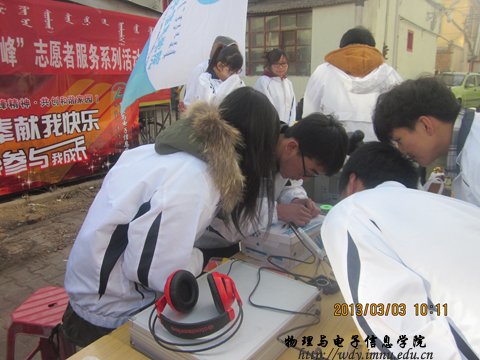 早上9点,科协会员在协会干部的带领下,开展义务维修活动。活动中协会的成员本着“学雷锋献爱心的精神” ,对老百姓送来的家电进行认真的检测与维修,并耐心的为他们讲解。协会人员认真负责的工作态度赢得老百姓的高度赞扬。