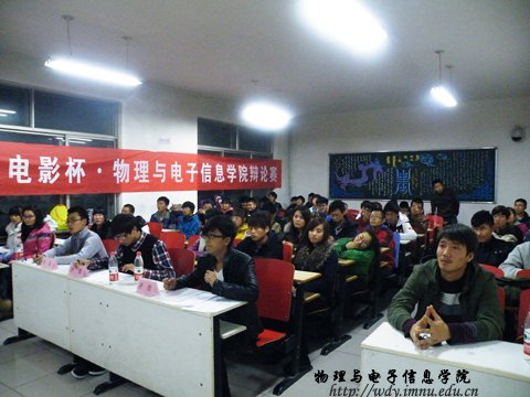 在田楼210室成功举办2012级新生“万达电影杯”辩论赛,担任此次辩论赛的评委有生活部部长马金辉,文艺部副部长鲁博以及团总支组织委员刘志欣。