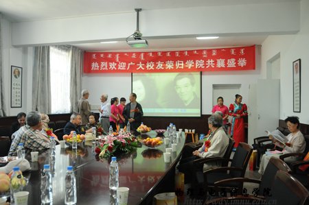 经过全院师生紧张而充分的前期准备工作,9月8日上午,全院师生热情接待了400余名来自四面八方的各界校友;上午各位校友在志愿者引领下参观了学院教学科研成就展并与老教师们进行了亲切的交谈,11时,全体校友在图书馆前合影留念,中午12时,全体人员在海航大酒店二楼宴会厅隆重举行了庆祝熟女直播 60周年院庆典礼和午宴,庆典由党总支书阿梅主持,阿书记代表学院对恭贺单位和个人表达了谢意,特古斯院长回顾了作为自治区建置最早的一所院系60年取得的成就,感谢各位前辈和各届校友对学院发展过程中给予的各方面的支持也展望了学院未来发展的远景;