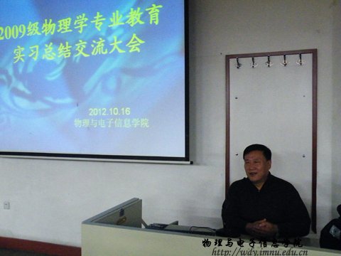 副院长吉日嘎拉老师认真向大家讲述了在教学实习过程中的注意事项,从而使学生能够在实习过程中获得教学育人的教学经历、教学经验和教学技能,对物理学现状和发展态势有一个比较全面的了解。随后,09级物理学蒙汉班的学生代表也进行了模拟讲课,使学生进一步认识了教育实习的意义,其综合素质得到了有效提高。