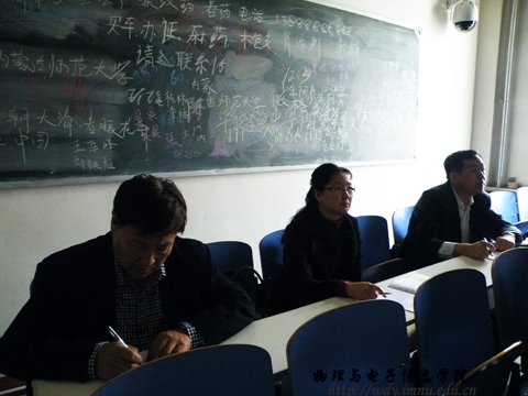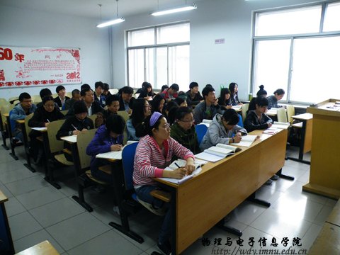 在课堂上,万欣欣老师和朝克夫老师分别向09级物理学汉班和09级蒙班的学生讲解了有关《非常规物理以及生态化物理教学》和《粒子系统的微观状态》的相关知识。在整个教学中,两位老师的教态亲切自然,有很强的亲和力,语言表达生动、准确、精炼,显示出扎实的教学基本功;充分展现了优秀青年教师的风采。