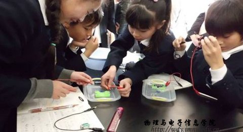 在日本留学期间,三位同学在我校客座教授松岡守先生的指导下,学习了日本的理科教育、技术教育和知识产权教育,对一些普遍关注的理科教育问题于三重大学的研究生一起进行了深入学习、交流和讨论,参观了日本的中小学校,多次与初中技术·家庭、理科和高中物理等学科的教师进行交流,听了相应的课程,加深了对日本的理科教育、技术教育和知识产权教育的理解,对日本的教育理念、教育形式和教育方法也有了进一步的了解,在此过程中,三位同学也收集了很多与自己研究方向相关的物理教育方面的资料,为其后续的毕业论文的写作和科学研究打下基础。在即将结束留学返回母校之际,三人合作完成了具有中国特色的水碓模型的制作,在这次实践过程中三个人的合作、创新精神和问题解决能力得到提升,水碓模型作为这次中日友好交流的象征,被日本三重大学留作纪念。