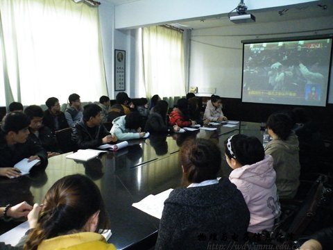 学工办王伟老师组织学生党员在物理楼一楼会议室开展了知国情、识时事,观看“全国政协十一届五次会议开幕”直播的学习活动。
