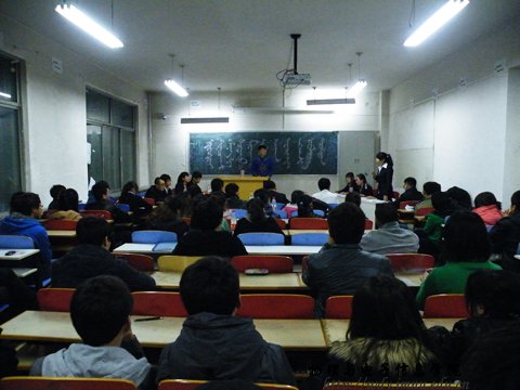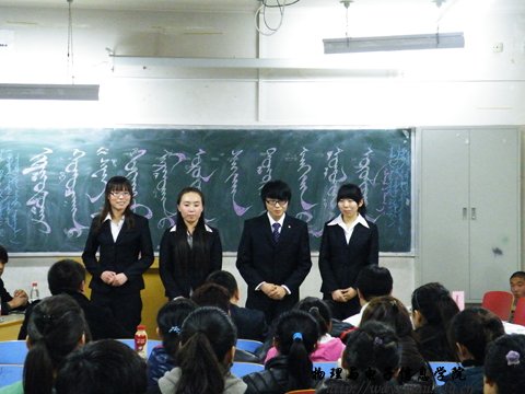 在田楼326和223教室分别参加了学校举办的“第6届盛乐杯全校大学生辩论赛”汉语组和蒙语组的初赛。