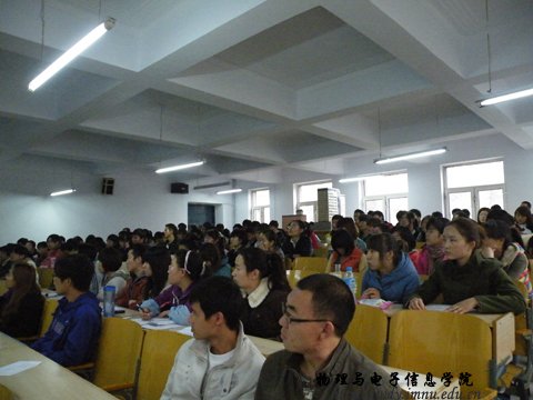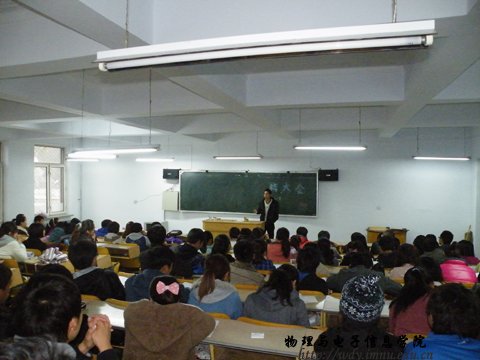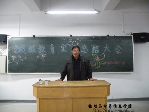 在信息楼四共举办了2008级物理系教育实习总结大会。学院副院长吉日嘎拉老师、物理系主任张敏老师、副主任那日苏老师以及物理系孙咏萍、朝克夫老师出席了本次会议。会议由副院长吉日嘎拉老师主持。