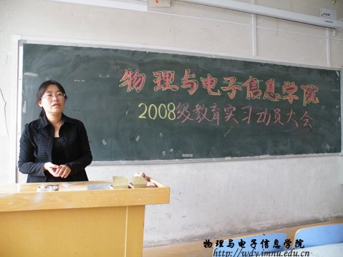 8月31日15:00熟女直播 在田楼223召开了08级物理系教育实习动员大会,参加动员大会的老师有副院长吉日嘎拉老师、物理系孙咏萍老师、那日苏老师。会议由物理系主任张敏老师主持。