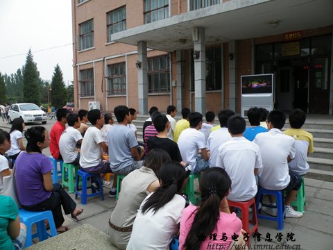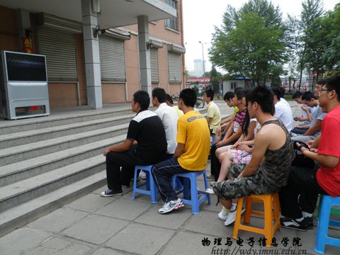 组织各班级的入党积极分子在物理楼前收看胡锦涛同志在庆祝建党90周年大会上的重要讲话。