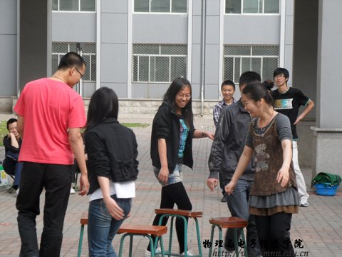09级物理学汉班在田楼西侧空地处举办了“班级宿舍文化系列主题活动月”之趣味运动会。具体的比赛项目有:丛林奔跑、旱地过河、仙人指路、抢凳子。同学们积极参加,热情高涨,现场气氛也非常地活跃,活动中时时传来大家阵阵的掌声和欢呼声,活动结束班委会为获奖宿舍及个人颁奖。通过这次活动充分地展示了同学们的集体精神面貌,展现了班级的团结协作精神。