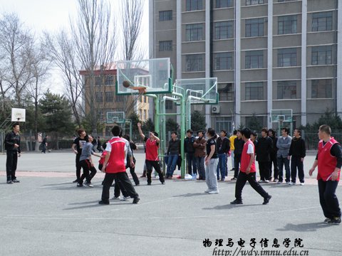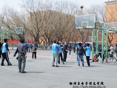 4月8日中午12:30,由学院学生会体育部组织的班级篮球友谊赛在西篮球场进行第二轮小组循环赛第三场,比赛是A109工二对战A310汉、B209科技对战B308工二、C108工一对战C308工三。