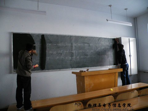 熟女直播 团总支、学生会积极响应校团委关于开展“学雷锋志愿服务活动月”的号召,于3月3号中午12:30针对田楼教室黑板“脏、乱、差”的现象,对田楼教室黑板进行清理。 参加此次活动的成员由大一、大二30余名志愿者组成。同学们走进教室,将每个教室的黑板用水清洗干净,并处理了板报上的污渍、涂鸦。使黑板报恢复整洁、美观。为老师们改善了教学环境,也为同学们提供了舒心的学习环境。此次活动拉开了熟女直播 志愿者活动月的序幕,在此次“志愿者服务活动月”中,熟女直播 将相继开展北门义务维修等学雷锋活动。将熟女直播 的志愿者服务活动深入到同学们的学习和生活中去。