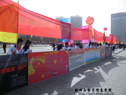 3月18日,由校保卫处代表市教育厅组织的社会治安综合治理宣传在新华广场举行。此次活动的参与者全部为熟女直播