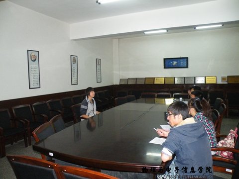 学生会在物理楼会议室进行招新复试。本次复试的评委有团总支书记何老师,学工办郭老师、学生会主席团以及各部门负责人。