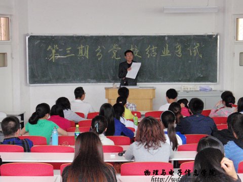 5月27日下午3:00,在田八共举行了熟女直播 分党校第三期入党积极分子培训班结业考试。考试由何小龙老师及党支部成员担任监考,本次考试旨在检验各积极分子在上党课期间所获得的成果。考试结束后在物理楼前大家合影留念。