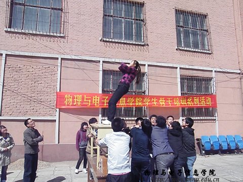 学生会组织全体干部在物理楼后进行了学生骨干培训系列——心理行为训练活动。