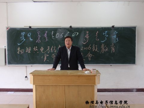 在信息楼四共举办了2006级学生教育实习总结大会。学院党总支副书记兼副院长辛智俊老师、院长助理吉日嘎拉老师、教育实习指导老师以及06级、07级蒙汉班学生共计200余人参加会议。会议由院长助理吉日嘎拉老师主持。