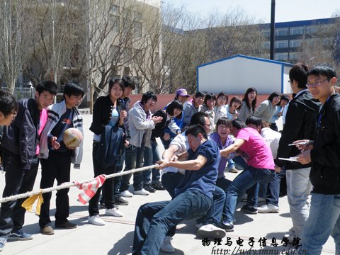 为了响应校团委号召,学院学生会积极组织开展一系列校园文化活动。2010年4月14日——16日中午在排球场开展拔河、羽毛球的初赛选拔活动。比赛现场气氛活跃,在场同学积极配合本次活动,此次活动目的在于增强学生身体素质,丰富在校大学生生活。