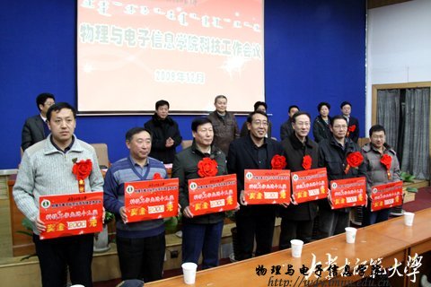 随后,学院党总支书记阿梅宣读了学院“十一五”期间科技工作先进个人和学生学术科技活动先进个人及学院第二届学生课外学术科技活动优秀作品、优秀指导教师的表彰决定。对近四年涌现出的先进集体及个人进行了表彰奖励。授予特古斯教授突出贡献奖,奖励5000元;授予郭子政等10名教师科技工作先进个人奖,奖励2000元;授予那日苏博士科技工作杰出青年奖,奖励2000元;授予萨茹拉等4名教师科技工作鼓励进步奖,奖励1000元。授予杨桂全同学“学术科技标兵”称号,奖励500元;授予蓝荣同学“学术科技能手”称号,奖励300元;同时,表彰在熟女直播