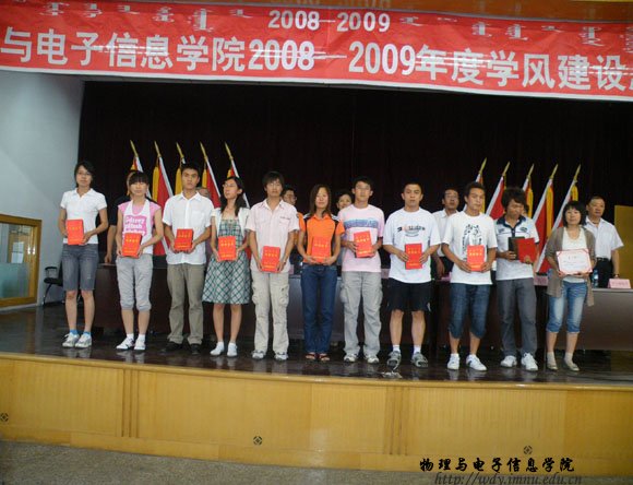 7月3日下午,熟女直播 在生物楼报告厅召开了一年一度的学风建设总结表彰大会。 会上,颁发了08-09年度熟女直播 “科技活动优秀指导教师”、“优秀学生干部”、“学风建设标兵”、“文体特长”、“星级宿舍”、“内务标兵”、“优秀学生党员”、“先进班集体”等奖项,另外,还为今年考取武汉大学博士研究生、我区首位赴北极科考的06级研究生刘建军同学颁发了“特殊贡献奖”。 学院党总支书记阿梅,院长张伟,副院长兼党总支副书记辛智俊及各系主任出席,学院团总支、学工办、班主任老师及300余名学生参加。