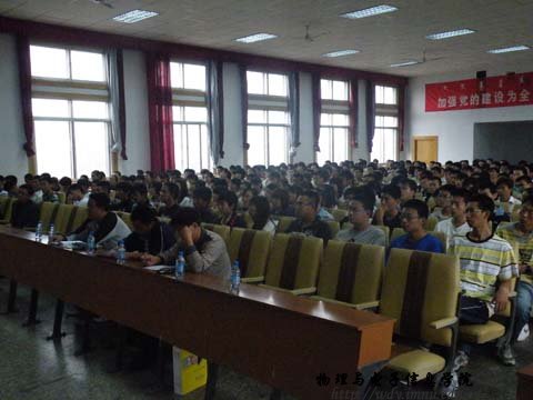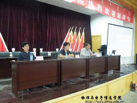 会上,张院长致欢迎辞,代表物电院全体师生欢迎09级学生的到来,由辛书记围绕“如何尽快适应大学生活”,进行了专题讲座,解决新生刚刚开始大学的困惑,为新生尽快适应大学生活指明了方向。