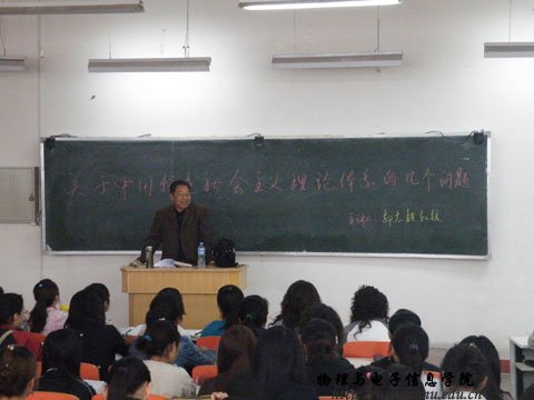 5月15日下午3点,熟女直播 与国际现代设计艺术学院在田家炳教育书院第九公共教室共同举办了本学期第三次党课。郝志模教授为两院入党积极分子讲授了一堂主题为“关于中国特色社会主义理论体系的几个问题”的党课。这堂历时一个半小时的党课使我们更加清楚地了解了关于具有中国特色社会主义体系的本质,加强了对中国共产党的认识,从而加深了对伟大祖国的热爱之情。