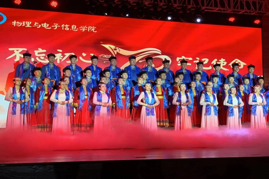 教职工身着民族服装,庄重朴素,一同唱响歌唱祖国的赞歌。“母亲是中华,五十六个民族亲亲一家”娓娓歌声道出全国人民团结一心的情谊,“我站在草原望北京,一望无际国泰安宁”雄浑气魄则唱出草原的豪情与美丽。当熟悉的旋律响起,当五星红旗飘扬上空,物电全体教职工及学生,共同献上对祖国70华诞的祝福与告白。