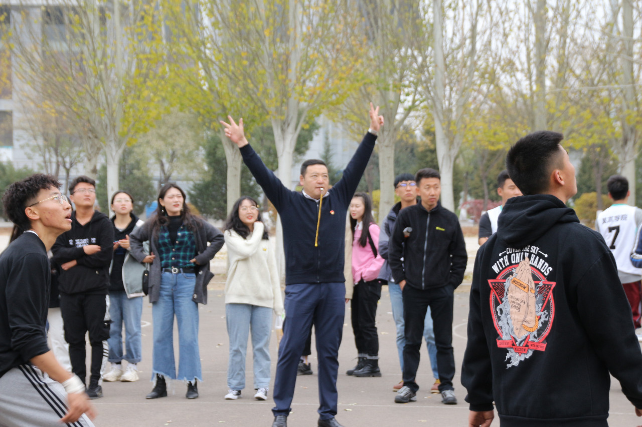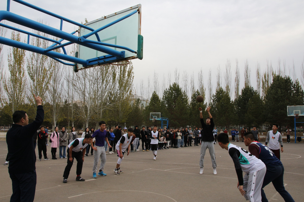 与美术学院开展友谊篮球赛,由张伟副书记担当裁判,监督比赛。