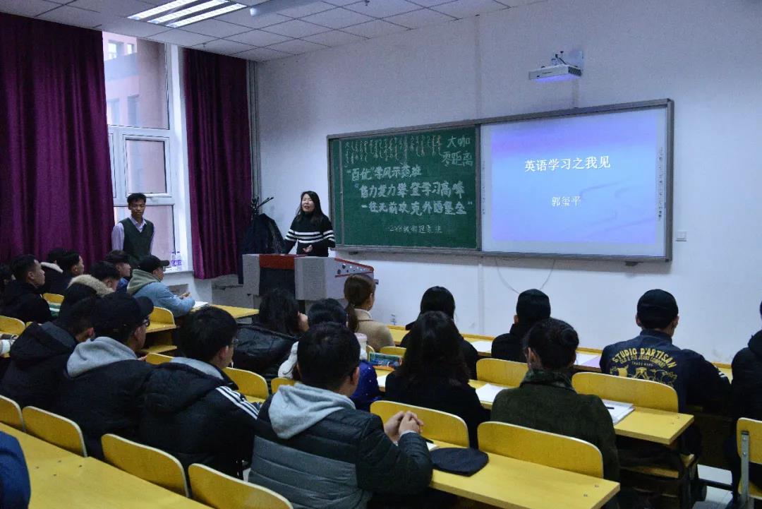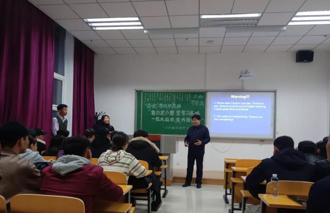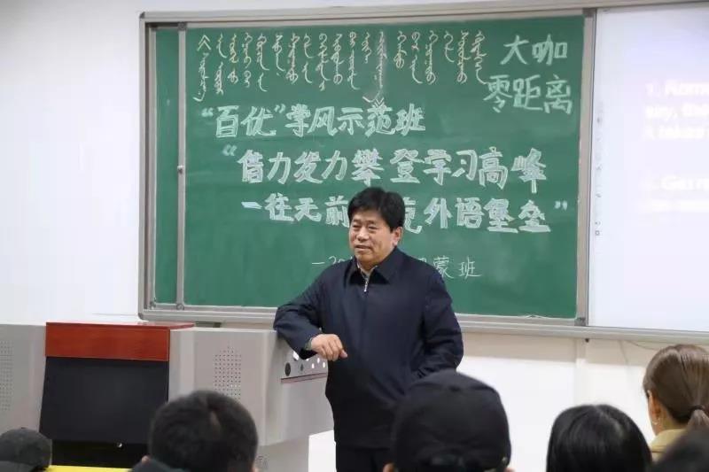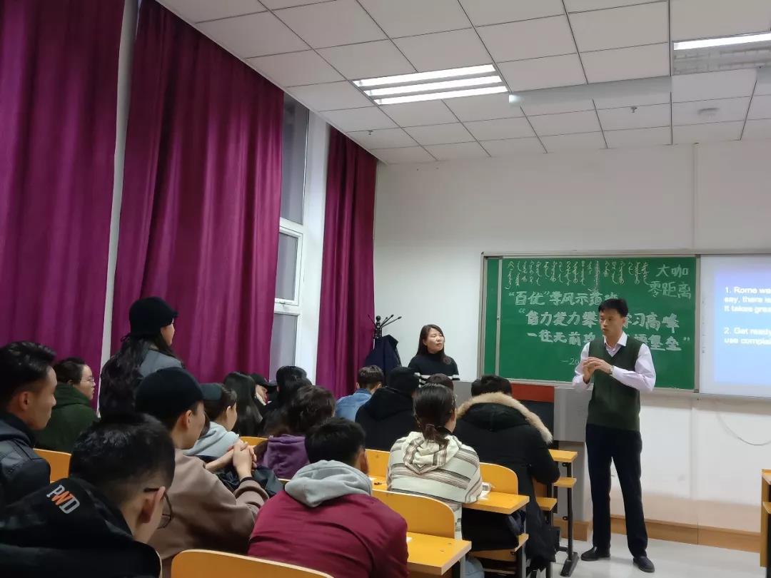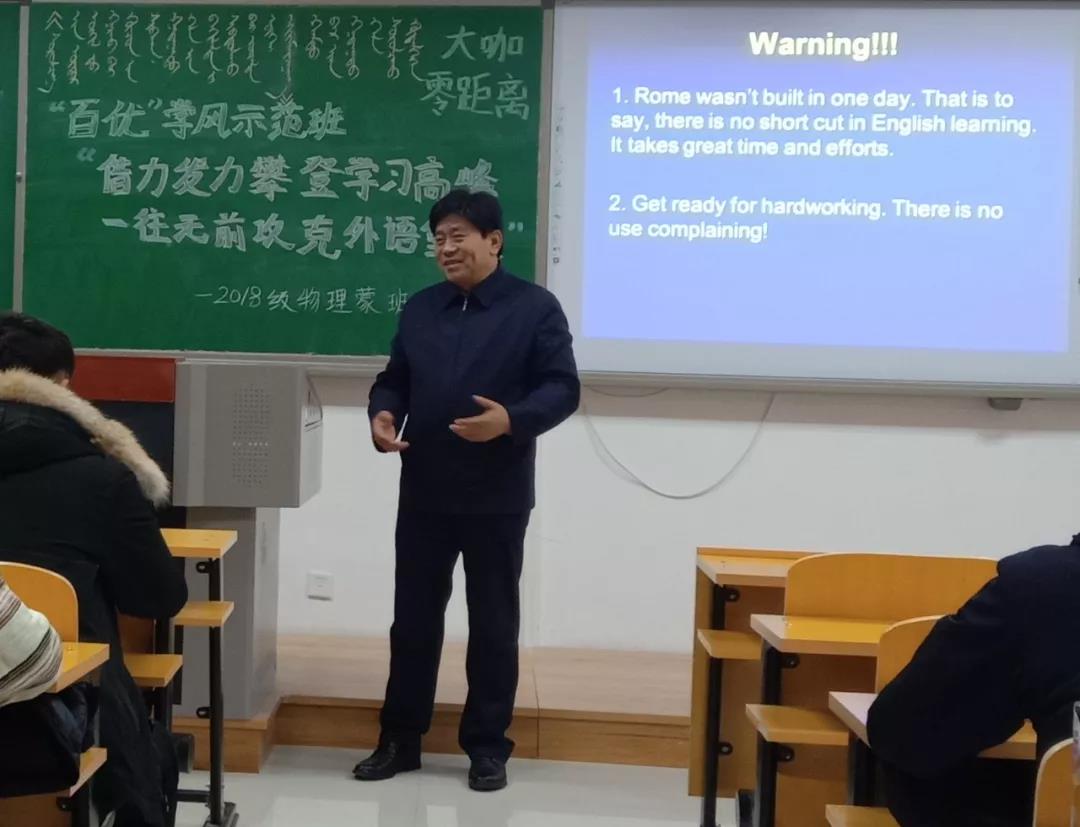 2018级物理蒙班,参加了该班“借力发力攀登学习高峰,一往无前攻克外语堡垒”主题集体学习英语班会,并与同学们进行了面对面交流。党政办、学生工作处及学院相关负责人陪同参加活动。本次活动特邀外国语学院郭玺平老师主讲,由2018级物理蒙班班主任伊博乐老师主持。