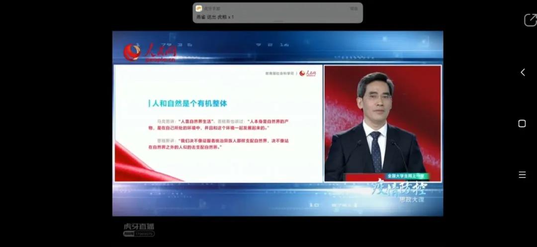 观看了思政大课后,我感触颇深。在各位教授的讲述下,我看到了疫情中涌现的感人事例,更看到了灾难面前的中国力量,中国速度,中国担当,致敬所有一线人员,众志成城,共克时艰,我们终将度过灾难,中国必胜!