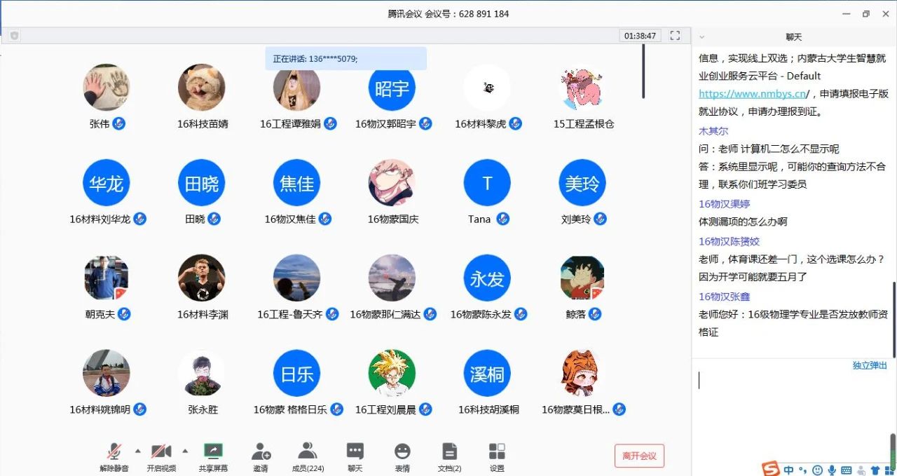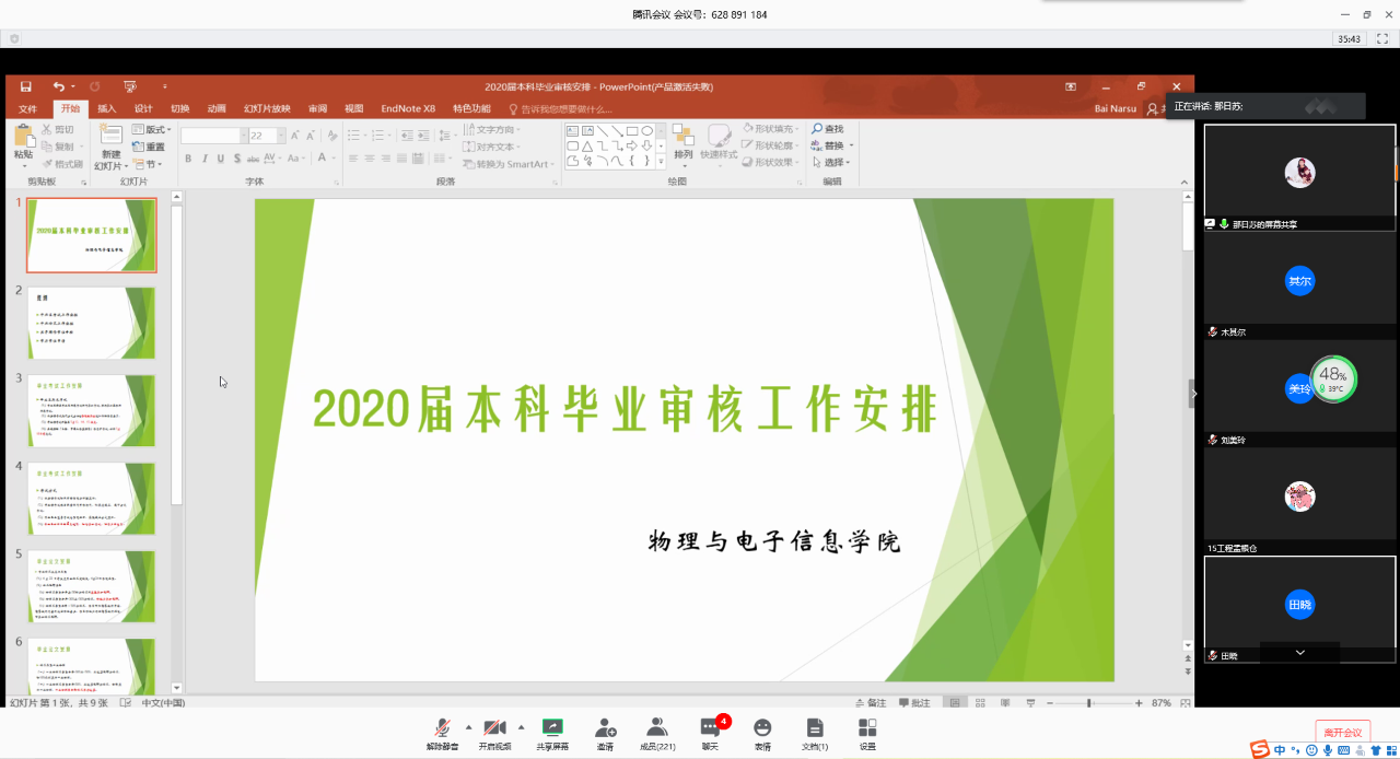 就业工作小组通过腾讯会议网络平台召开2020届本科毕业生毕业审核和就业工作会议。学院领导、各系主任、教务办、学工组、毕业班班主任,以及2020届全体毕业生共计220余人参会