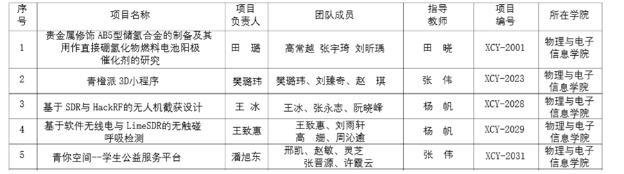 申报的《贵金属修饰AB5型储氢合金的制备及其用作直接硼氢化物燃料电池阳极催化剂的研究》等5个项目获批2020年校级大学生创新创业训练计划立项(见附件)。获评校级的项目学校将给予1000-3000元的经费支持。