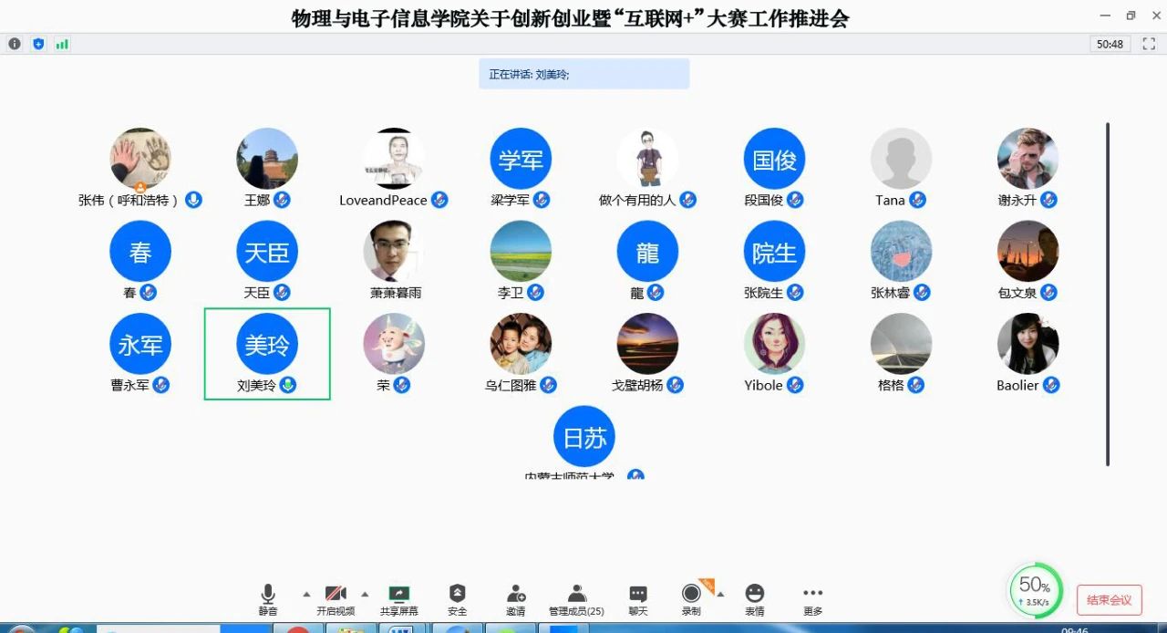 召开线上创新创业工作暨“互联网+”大赛工作推进会。学院党委书记刘美玲、副院长曹永军、副院长那日苏,创新实践部主任梁学军,本科生、研究生各班班主任老师,团总支、学就办、辅导员参加会议,学校招生就业处边建平老师受邀出席,会议由学院党委副书记兼副院长张伟主持。