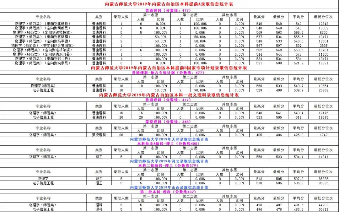 2019年录取信息