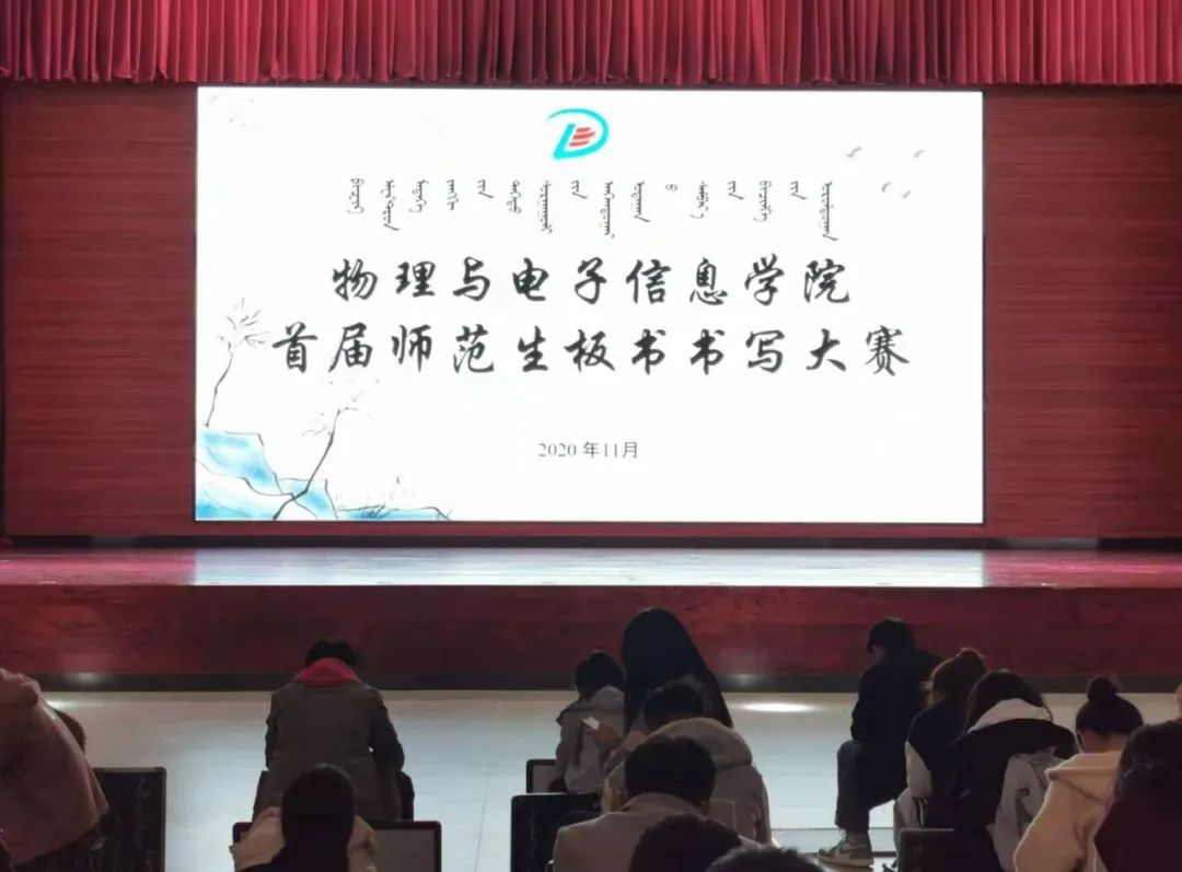 于11月12日下午在学生事务中心二楼举办了首届师范生板书书写大赛,杨帆、萨其尔、宝力尔和包文泉老师作为评委出席了本次比赛。