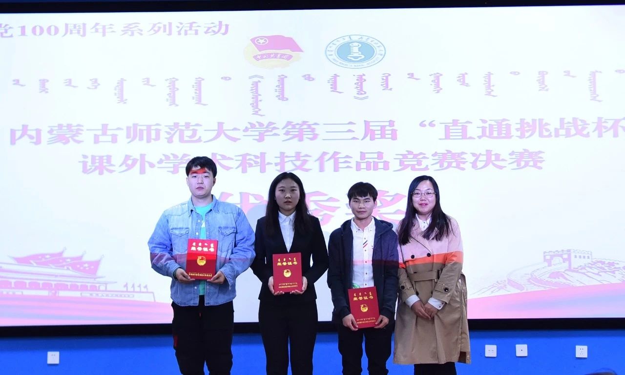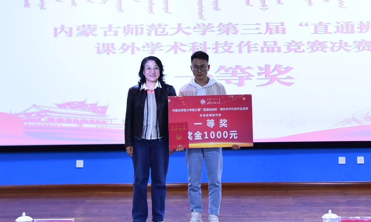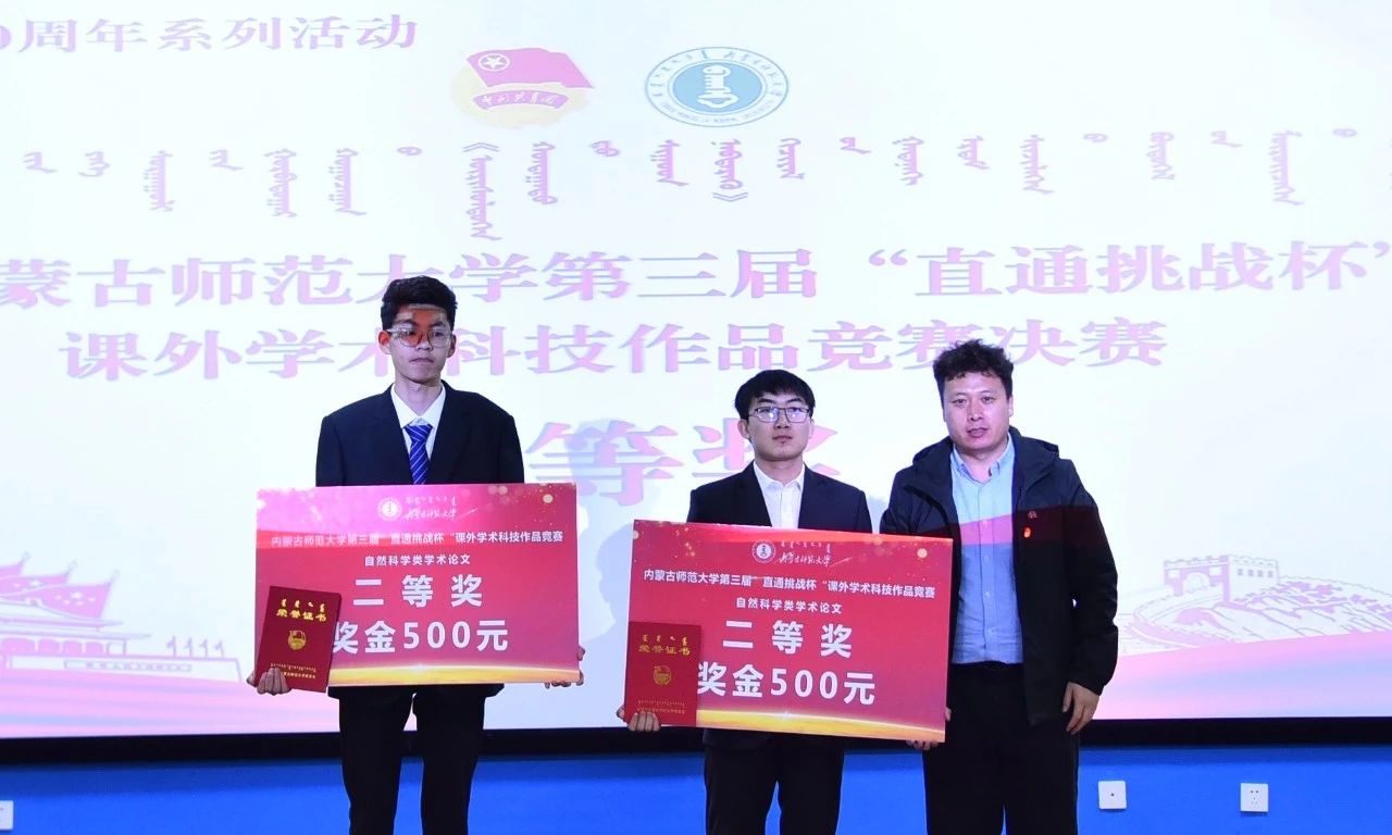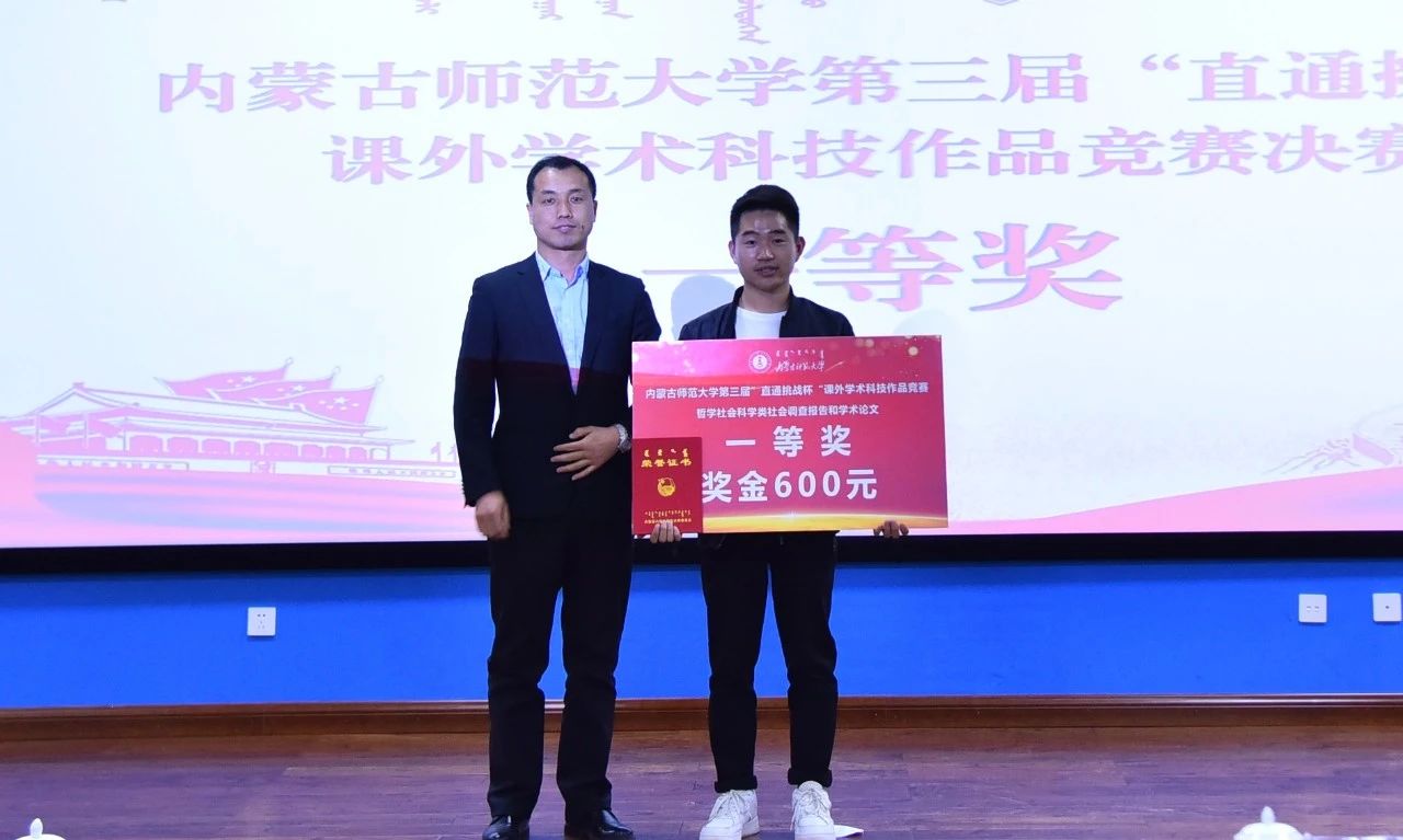 隋林泓等同学的“利用复式摆测量重力加速度及对摆的位形参数的测量”获得自然科技类学术论文作品一等奖,地理科学学院刘晶晶等同学的“增进民生福祉——征地补偿调查研究”获得哲学社会科学类社会调查报告和学术论文一等奖,计算机科学技术学院巴达日呼等同学的“物联网数据采集与监测云平台”获得科技发明制作类一等奖。