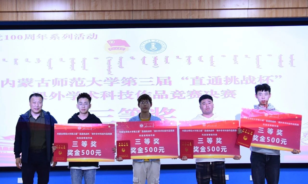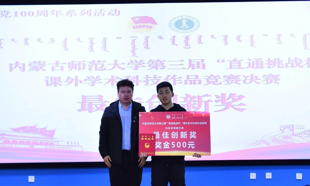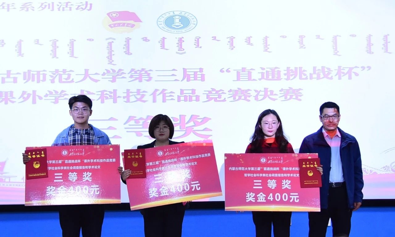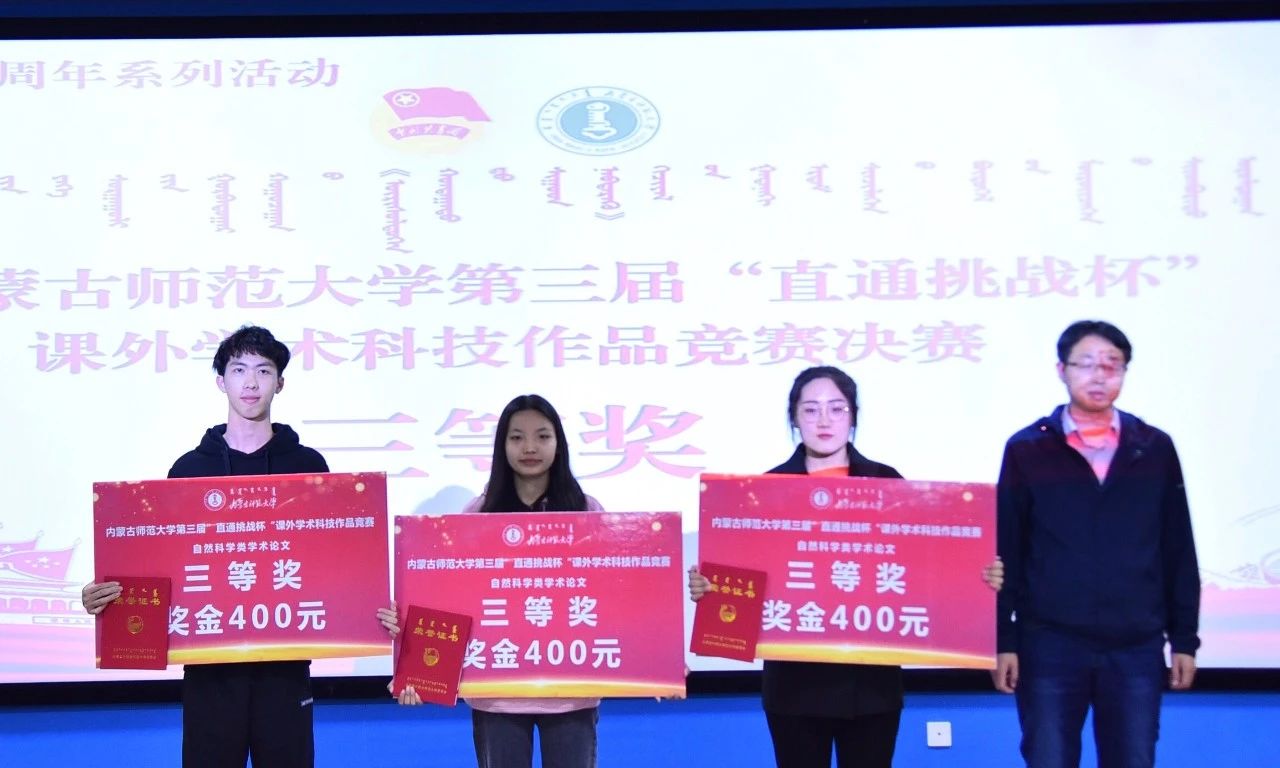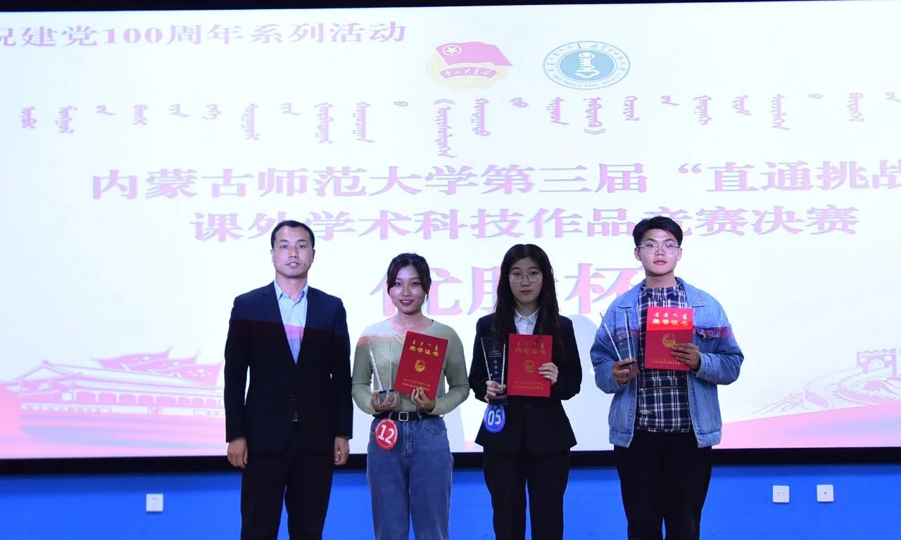 隋林泓等同学的“利用复式摆测量重力加速度及对摆的位形参数的测量”获得自然科技类学术论文作品一等奖,地理科学学院刘晶晶等同学的“增进民生福祉——征地补偿调查研究”获得哲学社会科学类社会调查报告和学术论文一等奖,计算机科学技术学院巴达日呼等同学的“物联网数据采集与监测云平台”获得科技发明制作类一等奖。