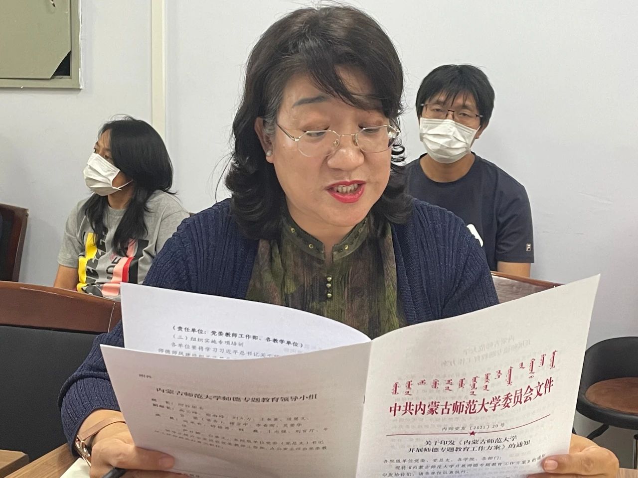 教师师德师风建设学习手册(第一版)》、《师德警示教育(一)——违反高校教师职业行为十项准则典型案例》进行领读学习。