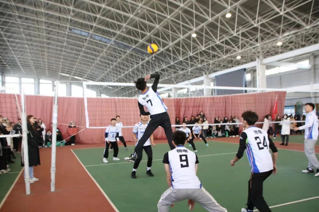 同学用顽强拼搏、永不言败的物电精神,一路过关斩将,在那时便拿到了男排比赛第一名的好成绩!